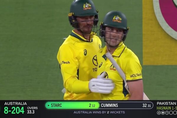 සංචාරක පාකිස්තාන කණ්ඩායම සමග පැවති පළමු එක්දින තරගයෙන් කඩුලු 2ක තියුණු ජයක් වාර්තා කිරීමට ඔස්ට්රේලියා කණ්ඩයම සමත්වුණා.