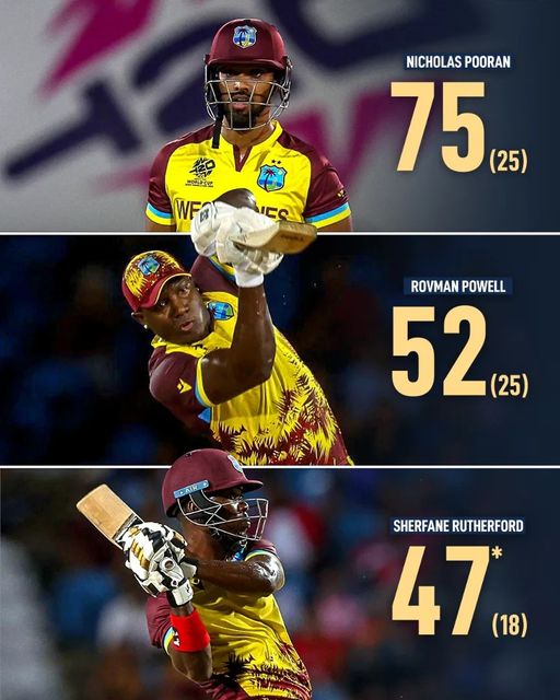 වේගවත් ඉනිමක් ක්රීඩා කළ නිකොලොස් පූරන් පන්දු 25කදි ලකුණු 75ක් රැස් කළේ හයේ පහර 8ක් සහ හතරේ පහර 5ක් සමගින්.