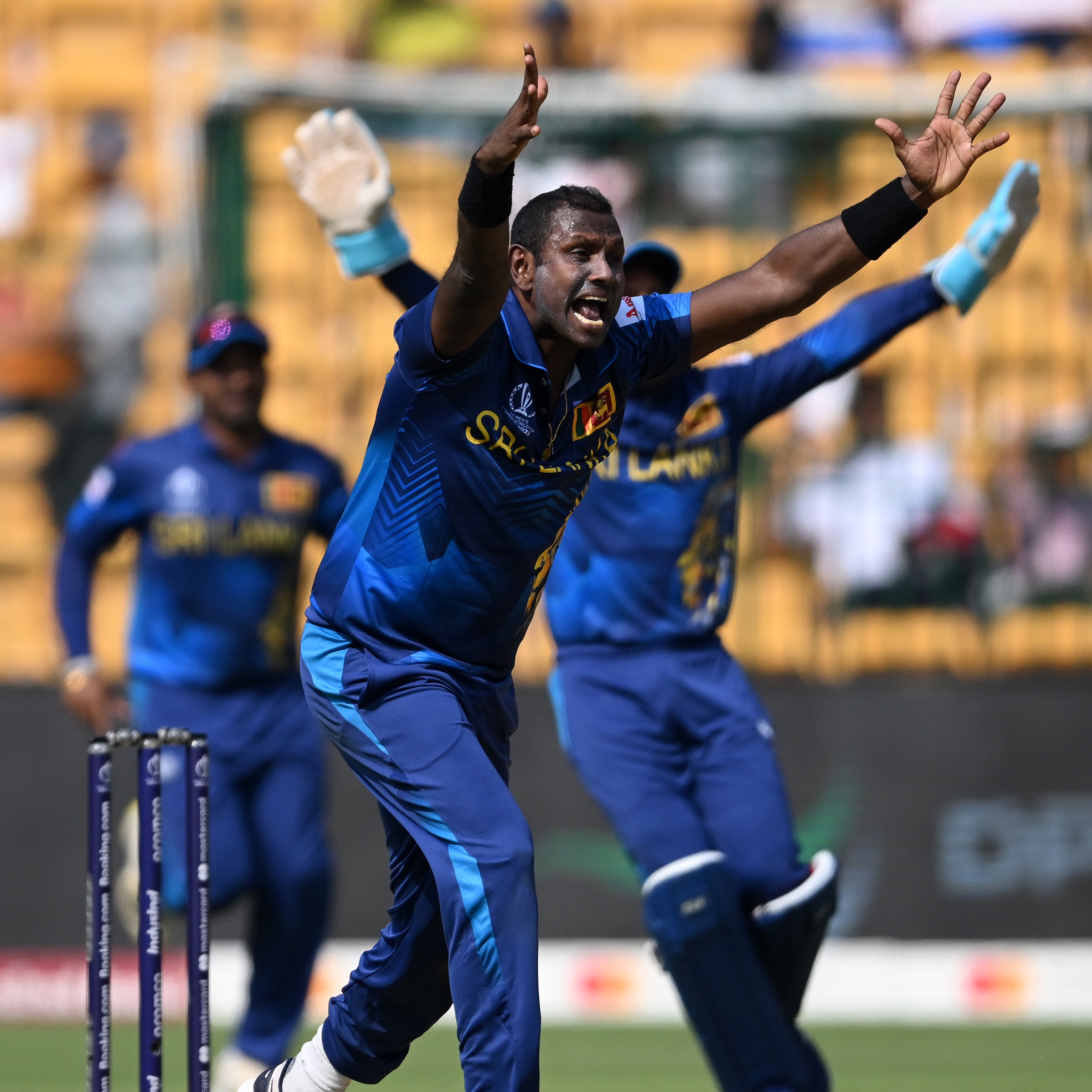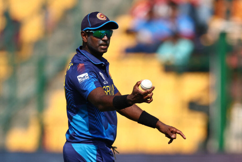 එක්දින ලෝක කුසලාන තරගාවලියේ එංගලන්ත පිලට එරෙහිව බැංග්ලෝර් හිදි දැන් පැවැත්වෙන තරගයේ තමන් ක්රියාත්මක පළමු පන්දුවාරයේදීම කඩුල්ලක් දවා ගැනීමට ඇන්ජලෝ මැතිව්ස් සමත්වුණා.
