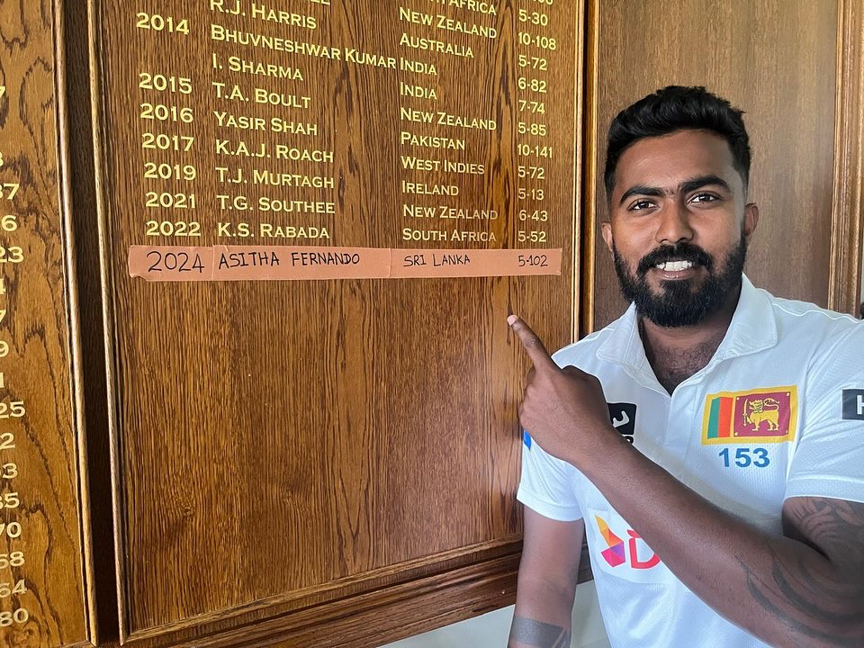ඒ අනුව ලෝඩ්ස් පිටියේ ටෙස්ට් කඩුළු ලාභීන්ගේ නාම පුවරුවේ වසර 33කට පසු ශ්රී ලංකා පන්දුයවන්නේකුගේ නම අද මෙලෙසින් සටහන් කෙරුණා.