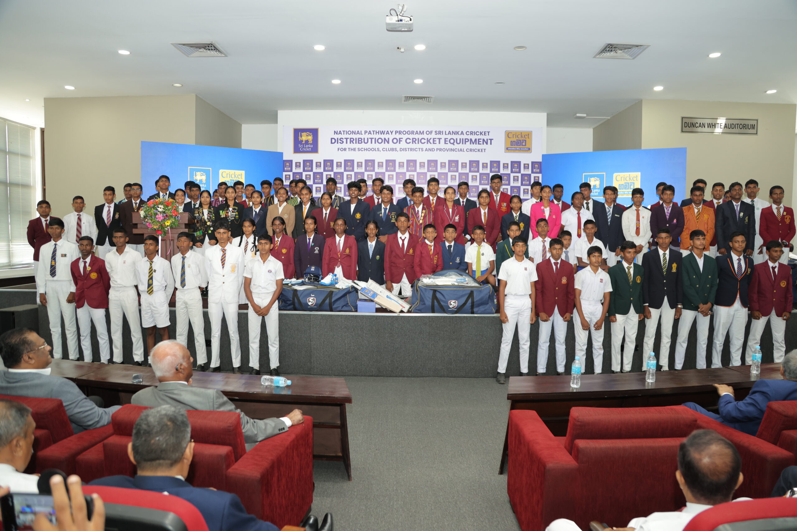 ක්රීඩා අමාත්යංශයේ ඩන්කන්වයිට් ශ්රවණාගාරයේ පැවති ප්රධාන උත්සවයේදී ක්රිකට් උපකරණ බෙදා දීමට අමතරව, ක්රීඩක ක්රීඩිකාවන් වෙනුවෙන් සපත්තු කට්ටල, ක්රිකට් ක්රීඩා කරනු ලබන සෑම පාසලකටම පන්දුව විසිකිරීම සදහා යොදා ගනු ලබන උපකරණ , දිස්ත්රික් සහ පළාත් පුහුණුකරුවන් වෙනුවෙන් පුහුණු කිරීමේ උපකරණ කට්ටල සහ ක්රිකට් පන්දු ද බෙදා සිදු කෙරුණා.