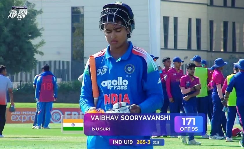වයස අවුරුදු 19න් පහළ ආසියානු කුසලාන ක්රිකට් තරගාවලිය ආරම්භ කරමින් අද (දෙසැම්බර් 12) එක්සත් අරාබි එමීර් රාජ්යයට එරෙහිව පැවැත්වෙන තරගයේ දී ඉන්දීය පිලේ වායිබව් සූරියවංශී යොවුන් ක්රිකට් වාර්තා කිහිපයක්ම අලුත්කිරීමට සමත් විය.