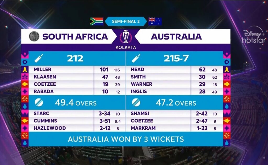 මින් පෙර 1999 සහ 2007 වසරවලදීද ඕස්ට්රේලියාව හමුවේ පරාජය වීම හේතුවෙන් දකුණු අප්රිකාවට අවසන් මහ තරගයට පිවිසීමේ අවස්ථාව අහිමි වුණා.