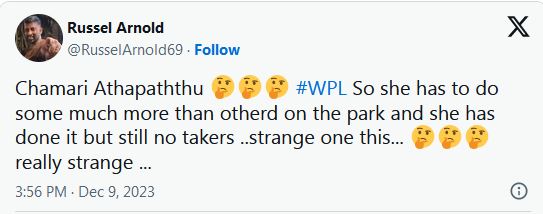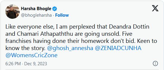 මුම්බායි ඉන්දියන්ස් කාන්තා පිලේ ප්රධාන පුහුණුකාරිනී චාර්ලට්ස් එඩ්වර්ඩ්ස් පැවසූවේ චමරිව මිලදී නොගැනීම සම්බන්ධයෙන් තමන් කම්පනයට පත්ව සිටින බවයි.