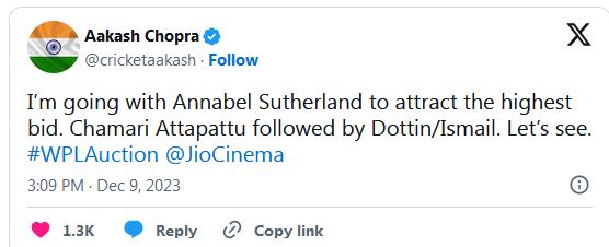ඇය සඳහන් කර තිබුණේ “I thought she was going to be one of the top three picks,” Mumbai Indians coach Charlotte Edwards told reporters. I’m shocked she didn’t get taken:”
