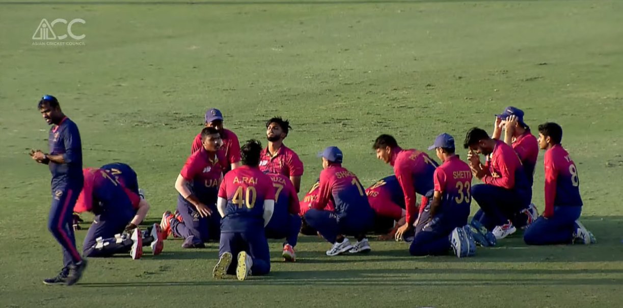 අවසන් පන්දුවාරයේදී එම කඩුලු දෙකම දවා ගනිමින් එක්සත් අරාබි එමීර් යොවුන් පිල ඓතිහාසික ජයක් ලබමින් පළමු වරට ආසියානු යොවුන් තරගාවලියක අවසන් මහා තරගයකට සුදුසුකම් ලබා ගත්තා.